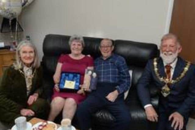 Derrick and Irene Potts, who live in Grove Court, celebrated their platinum wedding anniversary with friends and family, and had a surprise visit from Rotherham Mayor Robert Taylor.