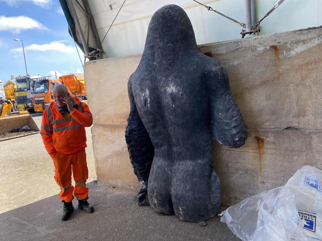 Huge gorilla statue found cut in half in a layby a year after being stolen | The Independent